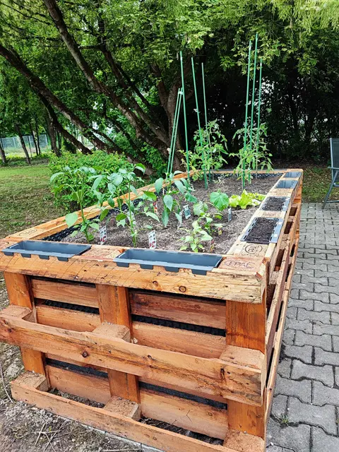 Wir freuen uns, Ihnen eine wunderbare Neuerung auf unserem Firmengelände vorstellen zu können. In unserem "grünen" Mitarbeiter-Pausenbereich haben wir zwei neue Hochbeete aufgestellt. Diese wurden von unseren engagierten Lagermitarbeitern aus Paletten liebevoll zusammengebaut und bepflanzt.